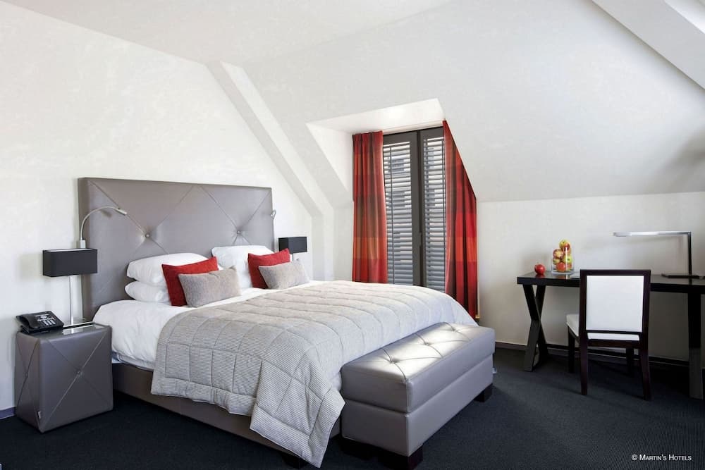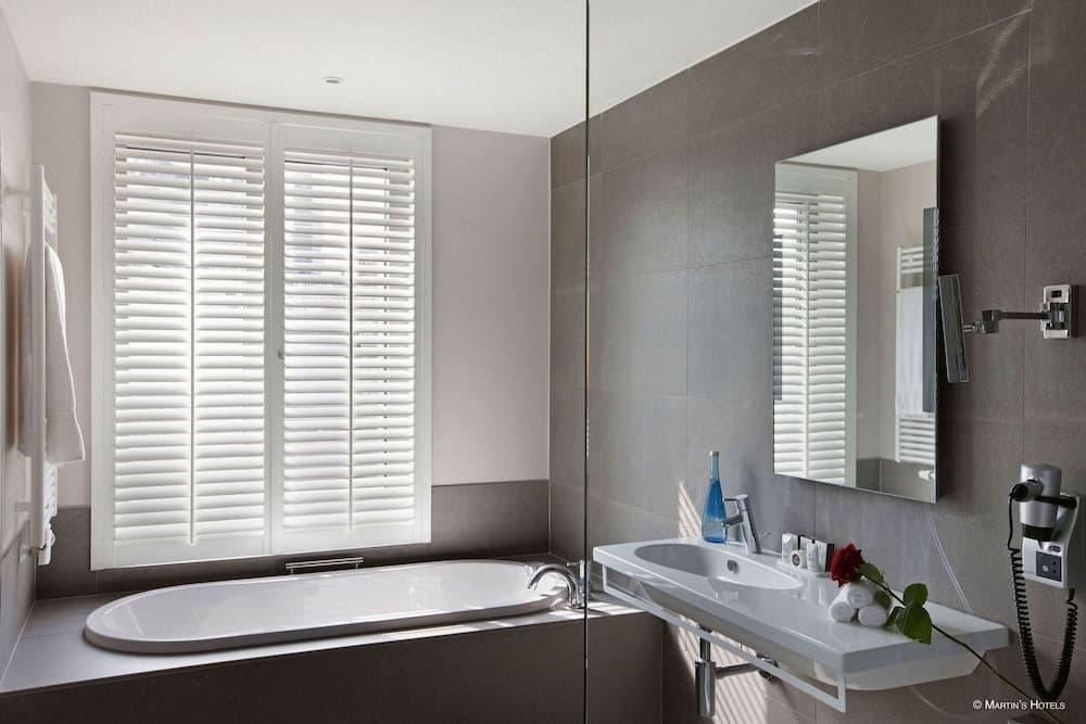 Adembenemend! Martin’s Klooster ligt verscholen in de knik van een charmant kasseistraatje in het hart van de historische stad Leuven en is wonderbaarlijk mooi. Zo zijn er overal eeuwenoude houten balken en glas-in-lood ramen. Bijzonder is ook de prachtige Orangerie, met een rustgevend uitzicht op de 1200 m2 tuin (met putting green!) waar iedere dag het ontbijt wordt geserveerd. De kamers zijn fantastisch; een goede combinatie tussen eigentijdse inrichting en de authentieke elementen. Er zijn zelfs kamers met sfeerhaarden en bubbelbaden. U wordt ontvangen in de lounge met receptie en bar, waar een heerlijke relaxte sfeer hangt en waar u sfeervol kunt ontspannen na een bezoek aan de stad. Er lopen dan wel geen nonnetjes meer rond in het klooster, maar daar zijn tevreden gasten voor teruggekomen. Op enkele passen van het hotel vindt u de Grote Markt met het fabelachtige stadhuis, vele winkels en restaurants. Kortom, een heerlijke plek voor een romantisch weekend voor twee! Huisdieren zijn niet toegestaan en alle kamers zijn rookvrij. In alle ruimtes van het hotel kunt u gebruik maken van snel en gratis draadloos internet.